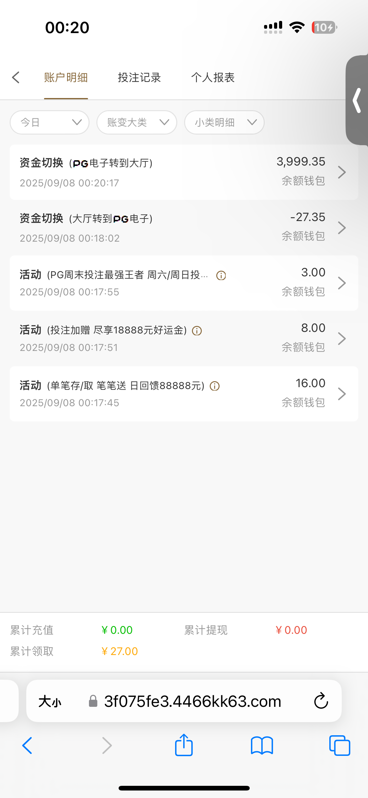 几百年前参加的44+66输没了 今天上号看有6块神秘彩金打到120 不给提、非要我按44+66活动打到666才能提、妈的 硬黑