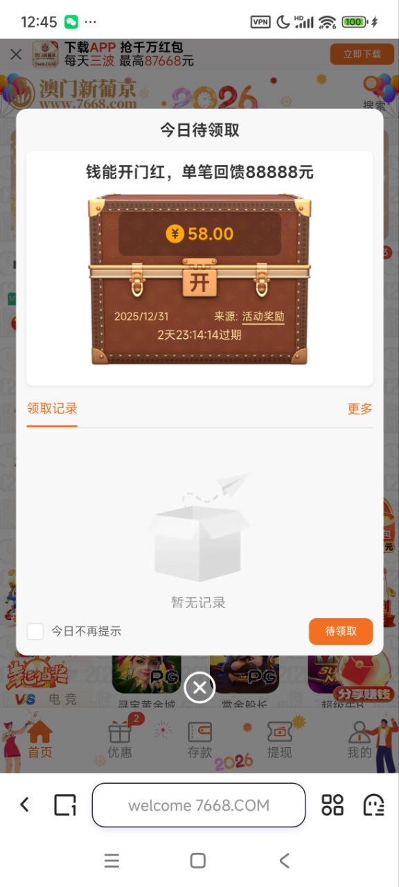 【7668】—✅—回馈彩金58+